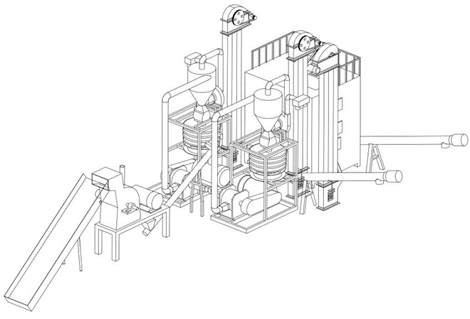 ?2:設(shè)備以多機(jī)組合的結(jié)構(gòu),一次投料,多機(jī)完成,配以自動(dòng)輸送,隔音技術(shù),冷卻系統(tǒng)等,達(dá)到金屬和塑料分離回收工作。
