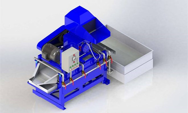 水式銅米機也叫做濕式銅米機,是一款加工處理廢舊電線的機械設(shè)備,主要由粉碎機和搖床組成,利用搖床來對粉碎后的廢舊電線中的銅和塑料進行分選,可以處理各種廢舊電線、電路線、通訊線、耳機線等直徑在5-20mm之間的廢舊電線。水式銅米機將破碎機安裝在水選機上方,破碎后的電線直接進入水選機。電線中的銅粒和塑料顆粒,在水流和震動的作用下,分離開來。銅粒向出銅端運動,后被篩分出來。